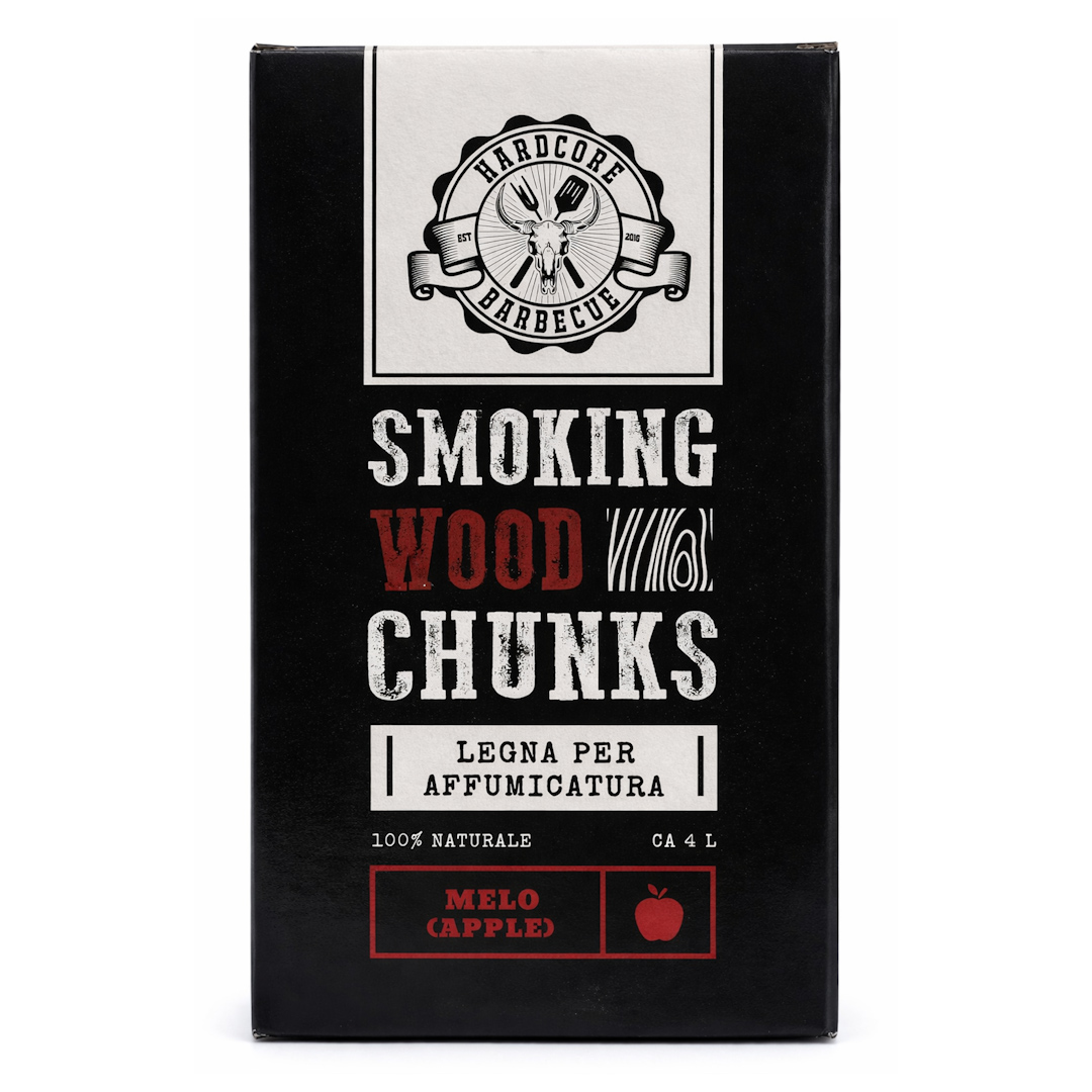 Le nostre Chunks di melo, sotto il brand Hardcore Barbecue, che e’ sempre proprieta’ di Grigliare Duro, ha istruzioni anche in lingua inglese.