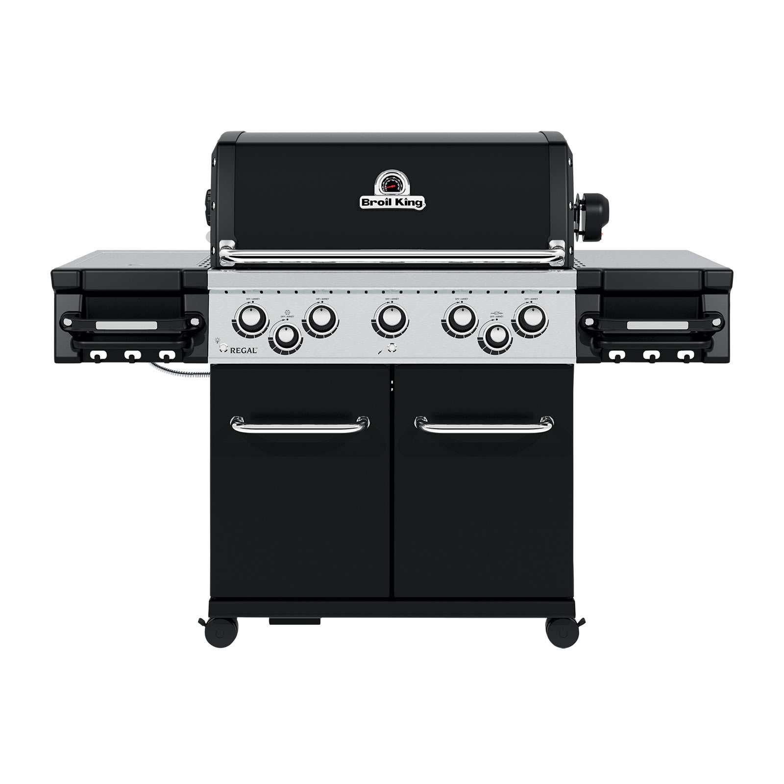Barbecue con girarrosto, bruciatore posteriore, fornello laterale e manopole illuminate a LED