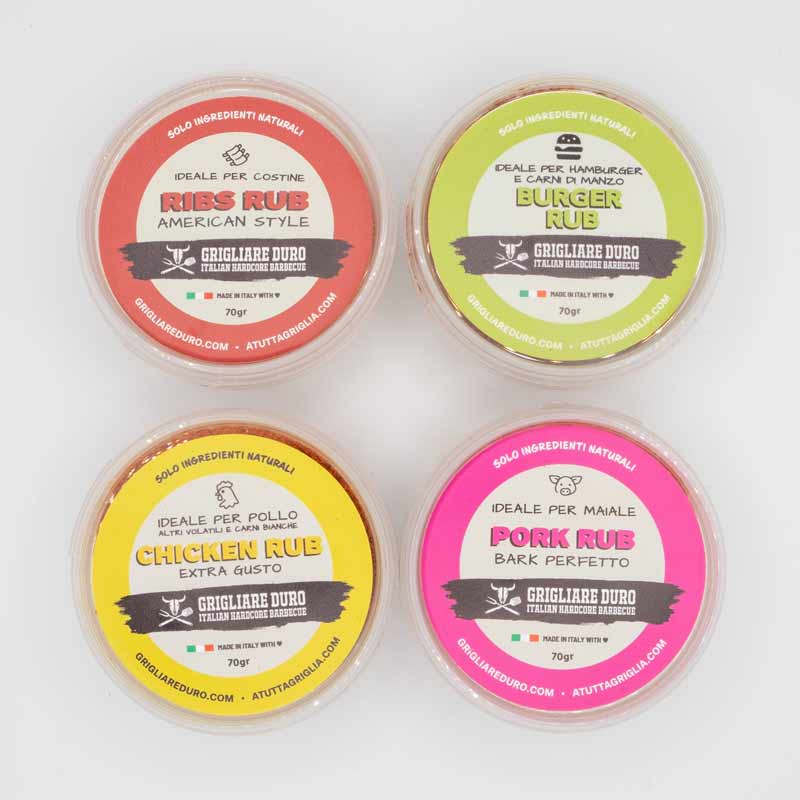• 4 Rub Fondamentali, made in Italy, 100% ingredienti naturali, per iniziarti al mondo del BBQ :