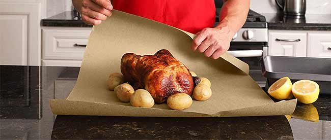 Per l’uso alimentare, per le cotture lente classiche del barbecue serve una carta apposita, una carta kraft per macellaio studiata appositamente per lo scopo.