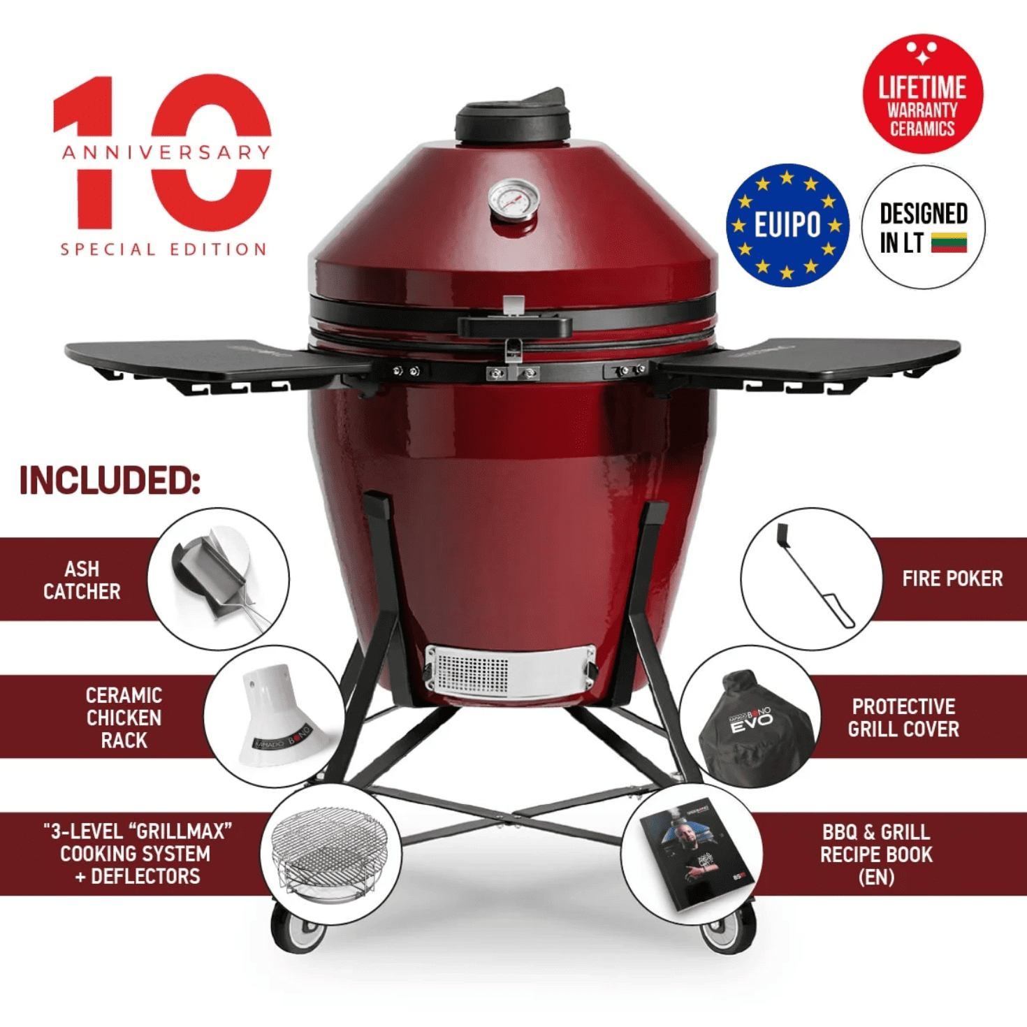 Il Kamado Bono EVO Grande 25″ Rosso è il barbecue in ceramica ideale per chi cerca massime prestazioni, ampia capacità di cottura e versatilità totale. Progettato per grigliate di grandi dimensioni, questo kamado garantisce un controllo preciso della temperatura, una distribuzione uniforme del calore e risultati perfetti in ogni modalità di cottura.