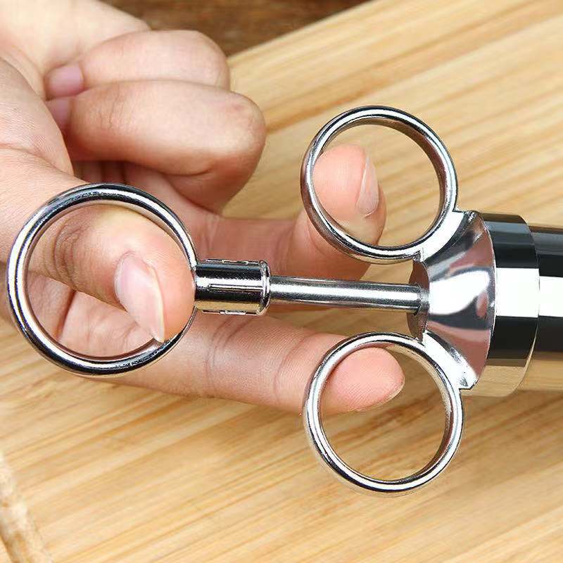 Bello, talmente bello che sarebbe un bellissimo regalo. Robusto e facilmente lavabile essendo in acciaio. Ha tre tipi di aghi per ogni occasione, vari strumenti per la pulizia e pezzi di ricambio per le guaine in silicone
