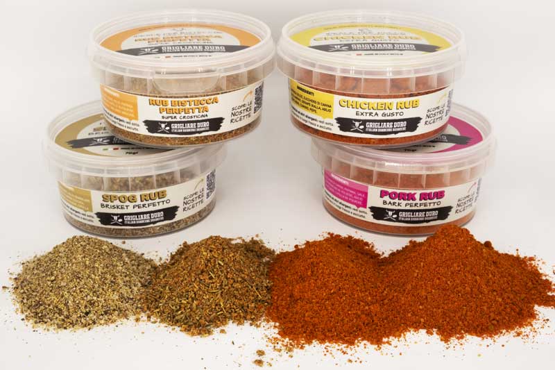 Questo kit rub Barbecue è una perfetta idea regalo, contiene 4 mini box di Rub per i classici usi. Il nostro Rub per Pollo, Maiale, Bistecca e lo SPOG rub