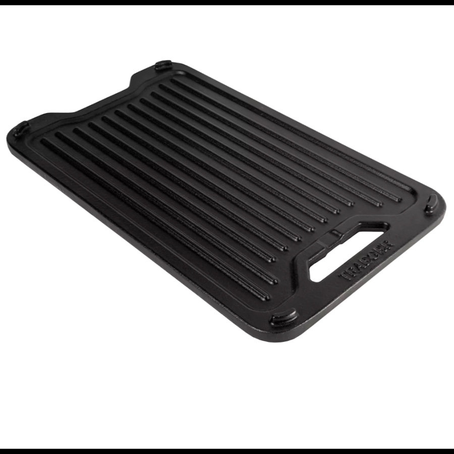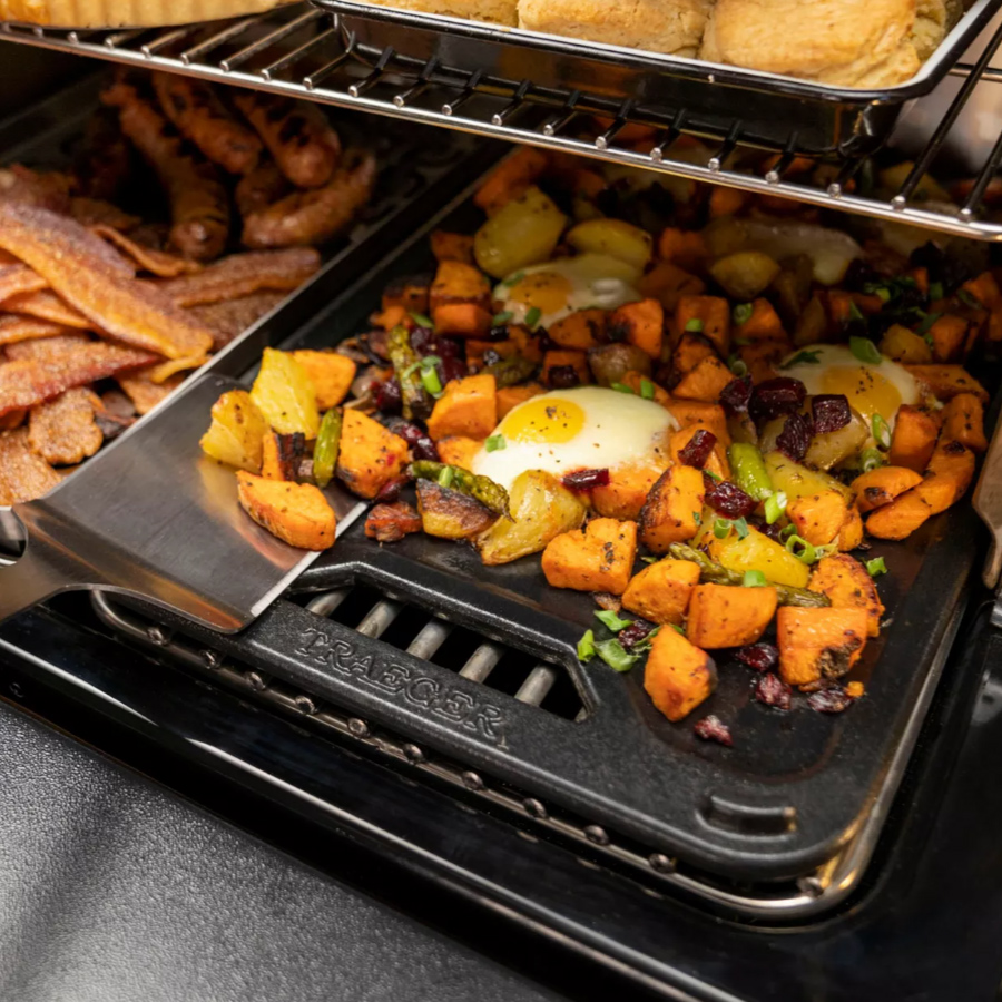 Espandi ulteriormente le capacità della tua griglia Traeger con la piastra in ghisa reversibile ModiFIRE®. Progettata per adattarsi saldamente alla griglia di tutte le griglie Traeger compatibili con ModiFIRE®, questa piastra reversibile presenta un lato piatto ideale per attività come friggere uova e pancetta e un lato scanalato per ottenere segni di scottatura perfetti. Un canale incassato consente al grasso di drenare direttamente nel fusto EZ-Clean Grease & Ash Keg della tua griglia per la massima praticità. È inoltre realizzata in ghisa per un’eccellente ritenzione del calore e presenta un rivestimento in smalto, quindi è pronta per cucinare appena tirata fuori dalla scatola.