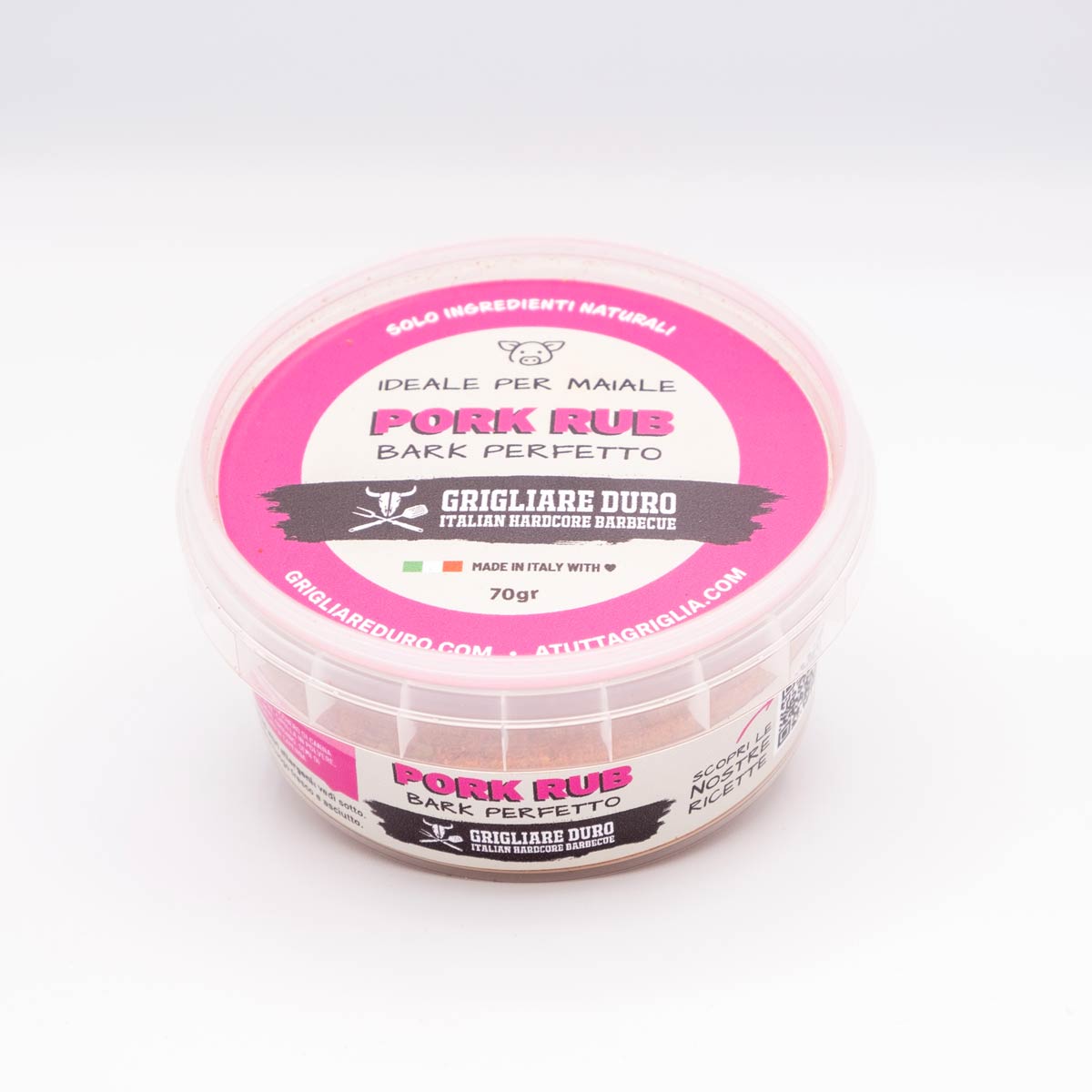Un buon pork rub deve rispettare certi canoni molto rigidi: si deve presentare con il suo inconfondibile colore rosso, avere una punta di piccantezza, dovuta dal pepe e dal peperoncino, bilanciata da una importante quantità di zucchero che sarà anche un ingrediente fondamentale per la creazione del nostro meraviglioso e croccante bark.