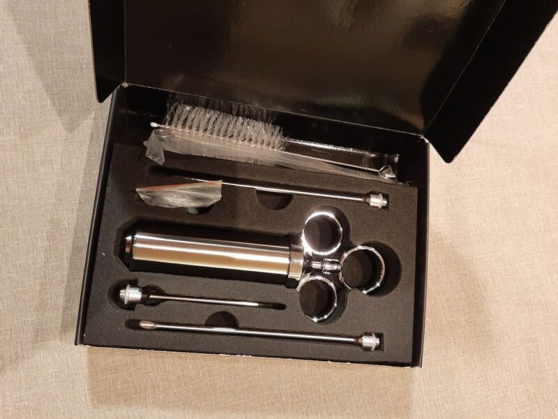 Siringa in acciaio – per iniettare marinature e succhi all’interno della carne.