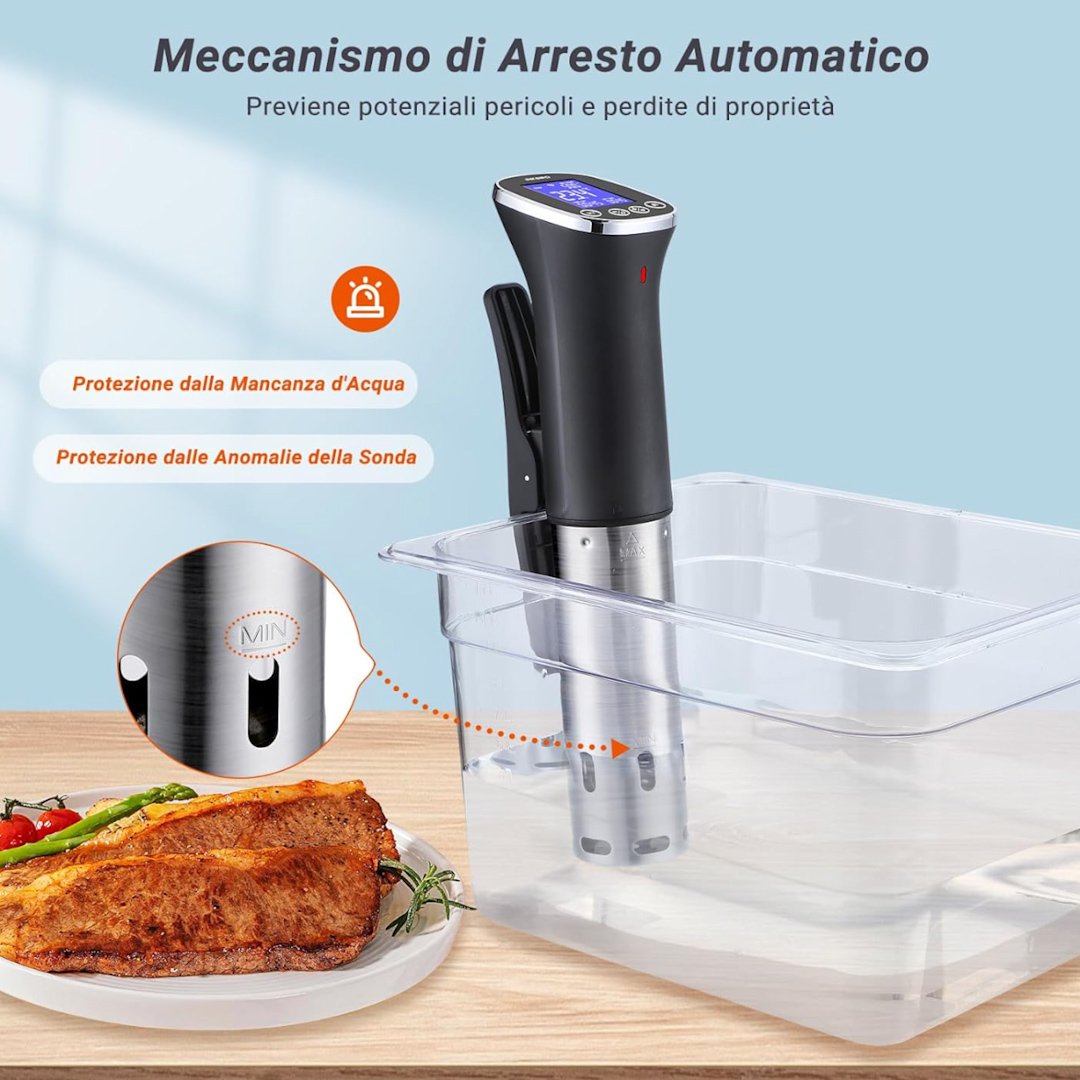 - Il motore da 1000W permette all’acqua di circolare a 360° e riscaldarsi velocemente e costantemente, garantendo omogeneità di cottura. Utilizzabile all’interno di pentole/casseruole e adatto alla cottura di tutti gli alimenti.