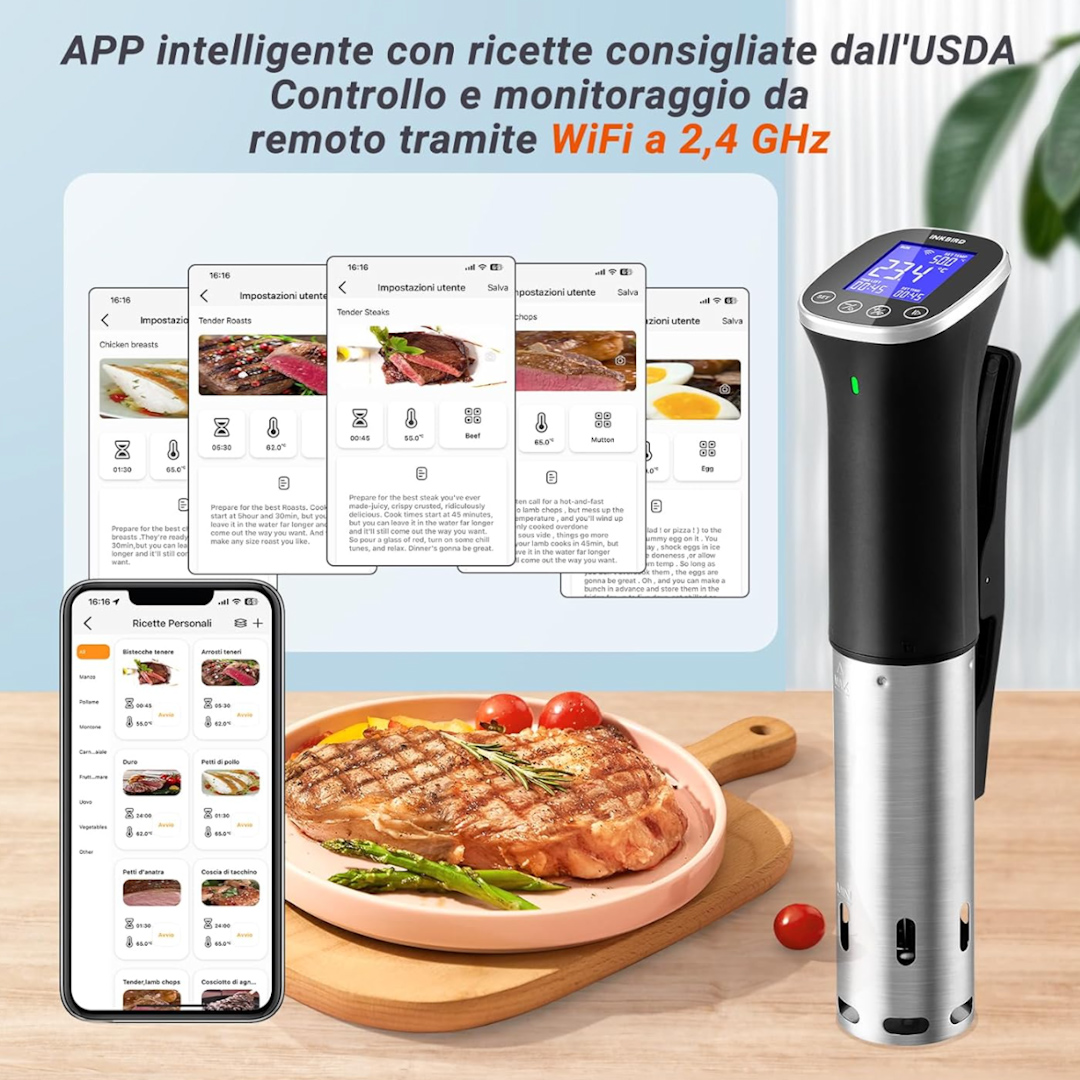 Con Inkbird Wi-Fi Sous Vide Precision Cooker, puoi liberare le mani e lasciare la cucina durante la cottura