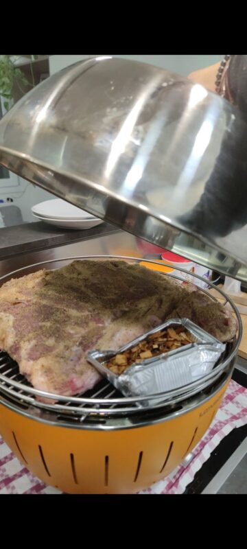 Prepara il tuo barbecue per una cottura indiretta a 150 gradi e affumica con legno di melo.