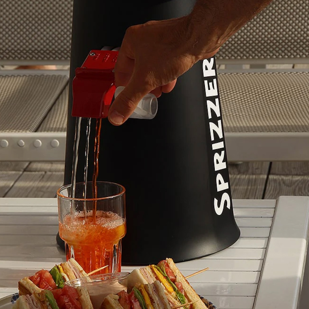 Lo Sprizzer è il tuo alleato: una botticella super cool con pompa manuale che riempie infiniti bicchieri di spritz.