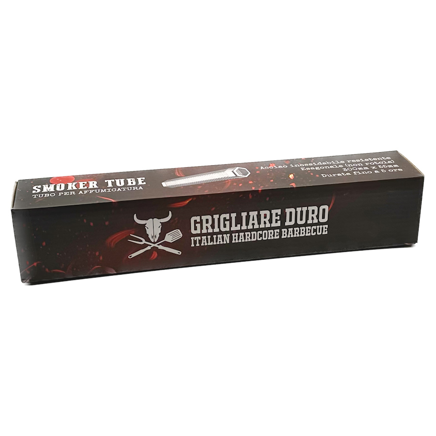 Il nostro Tubo affumicatore e’ in acciao inox, lavabile in lavastoviglie e perfetto per affumicare pellets o chips nel tuo barbecue.