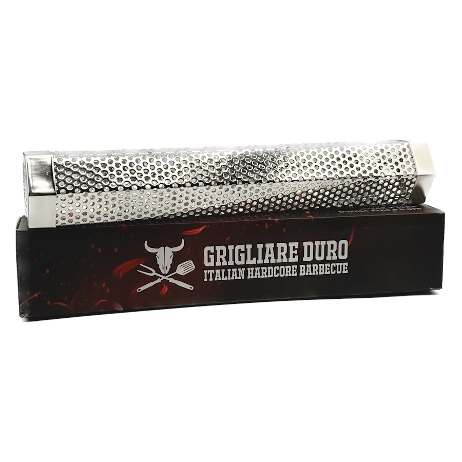 Tubo in acciaio Inox, comodissimo sia per chips che per pellet. Affumicatura fantastica anche per barbecue a gas.